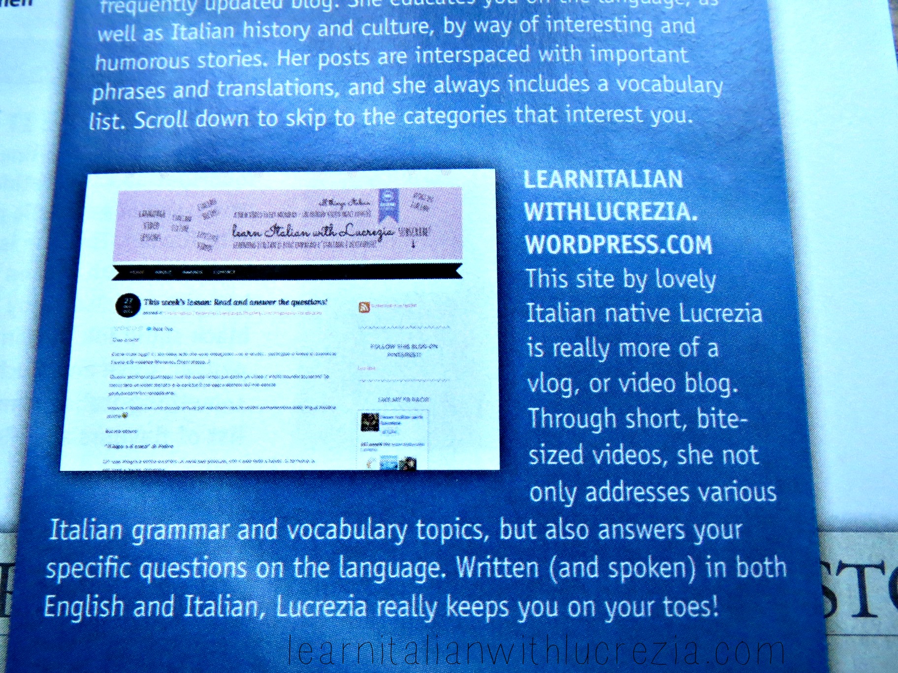 learnitalianwithlucrezia.com was featured in the October ’13 issue of Italia! Magazine in the blog watch section for Italian learning blogs 😀 So happy, I had to buy a copy!