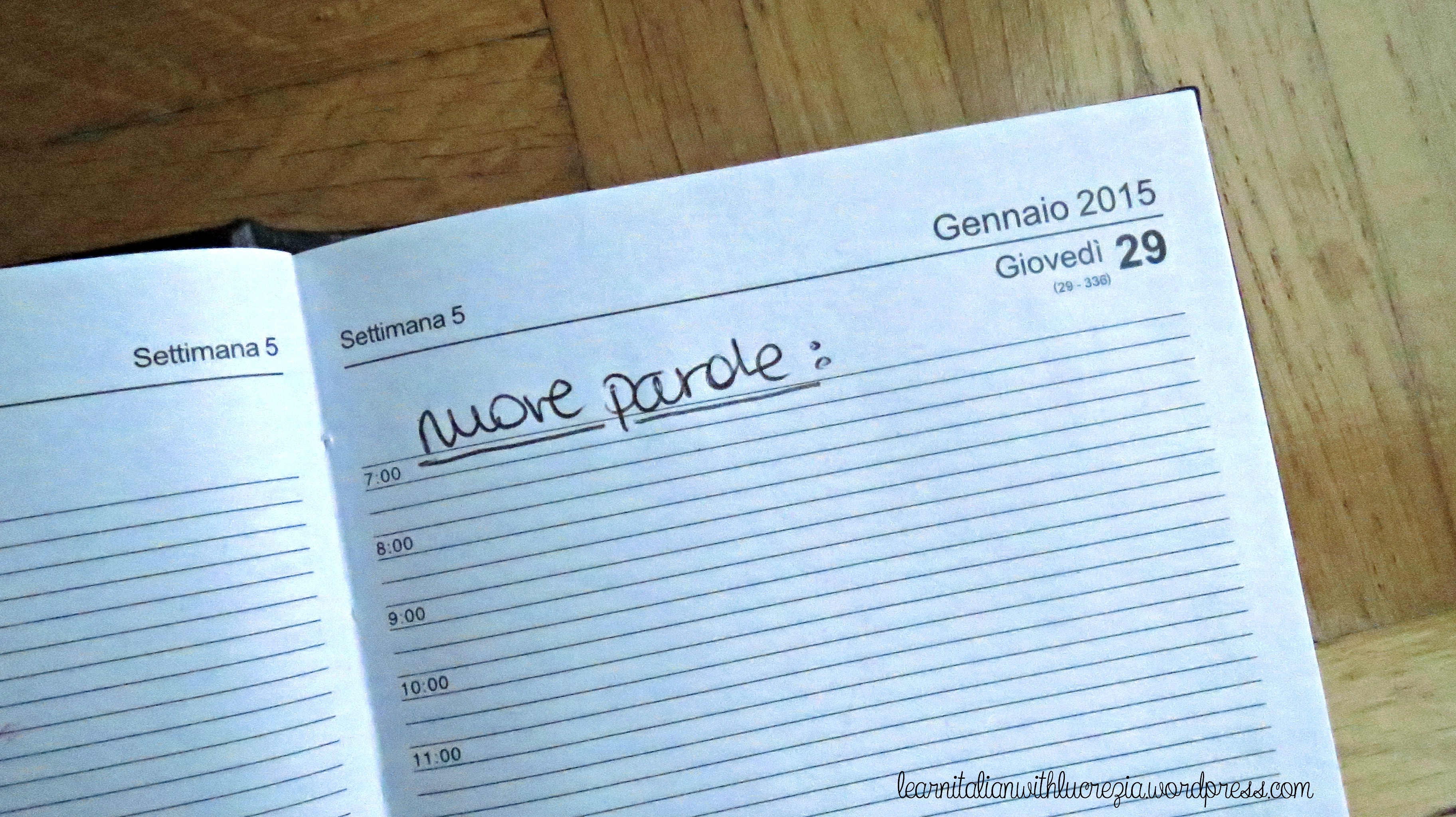 Il primo consiglio è scrivere ogni giorno le parole nuove in un’agenda settimanale, così da poter sapere in che giorno avete imparato una certa parola e per essere più organizzati. Se avete un taccuino con le pagine bianche, basta scrivere la data in cima alla pagina!